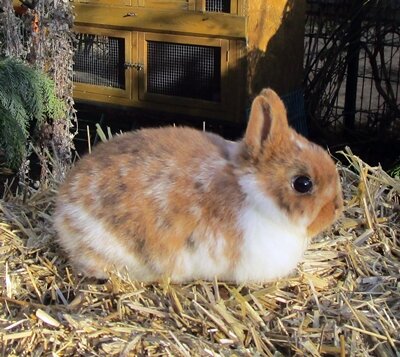 Herr Bert rot - weißer Rammler, tät. geb.: 01/2023 Vater: rot - weißer Rammler, tät. Mutter: rote Häsin, tät. aus Vereinszucht |